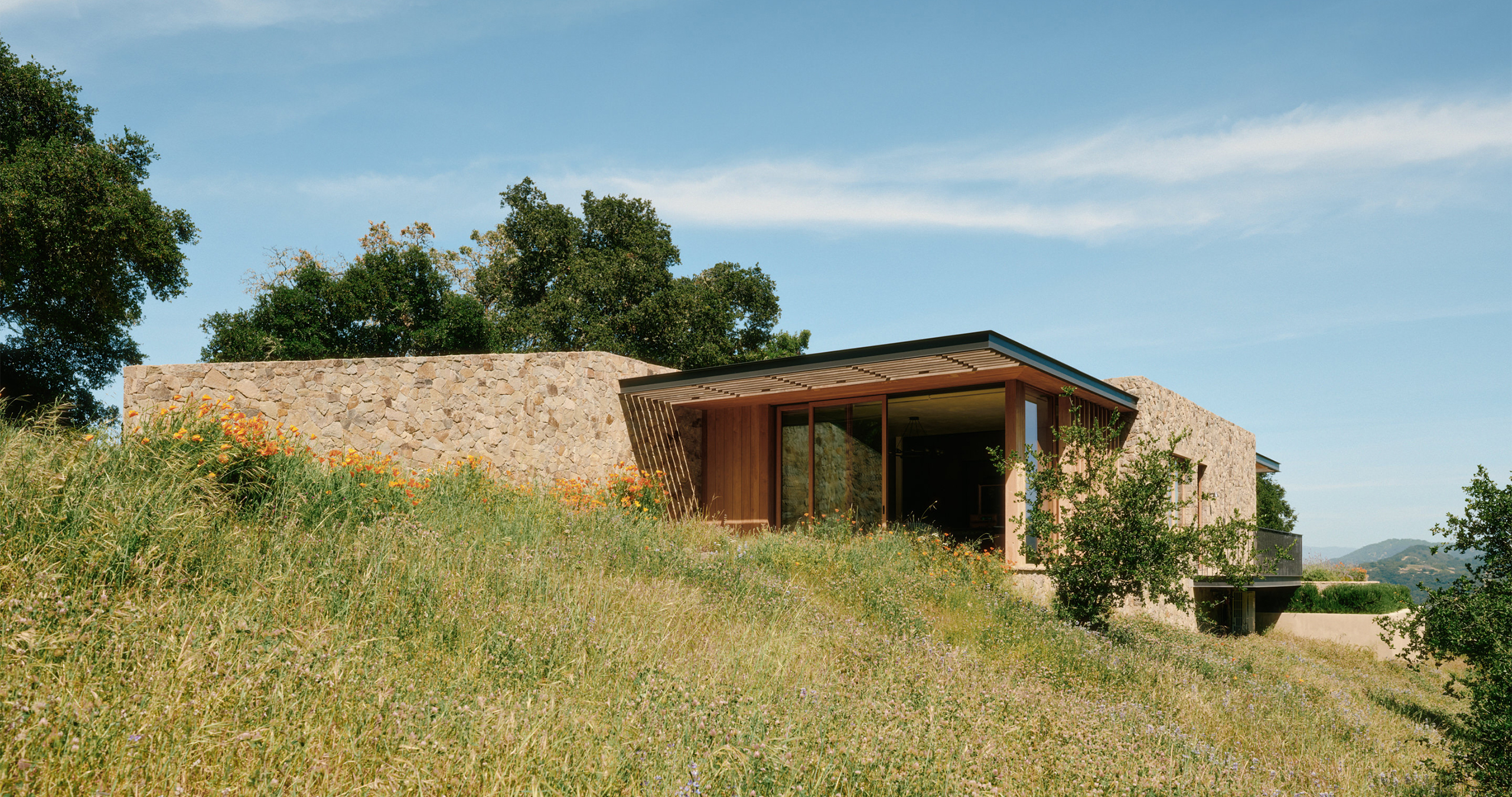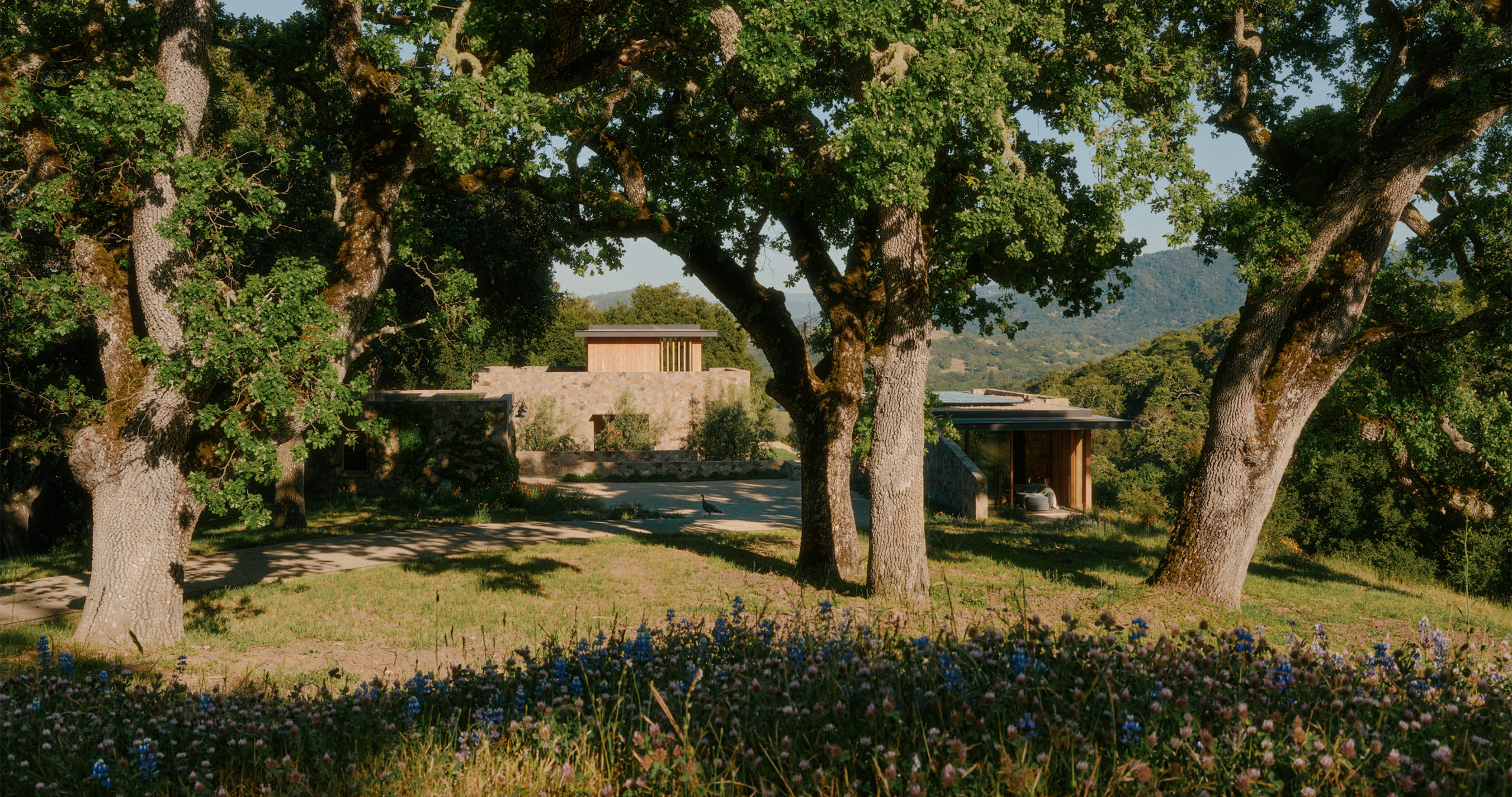 The plant palette is comprised largely of native grassland and oak woodland species, with over 90% of the site dedicated to restoration plantings that are specific to the site’s position within the Santa Lucia Mountains. The balance of the plantings are Mediterranean and climate-appropriate species selected for their drought-tolerance and pollinator-attracting qualities.