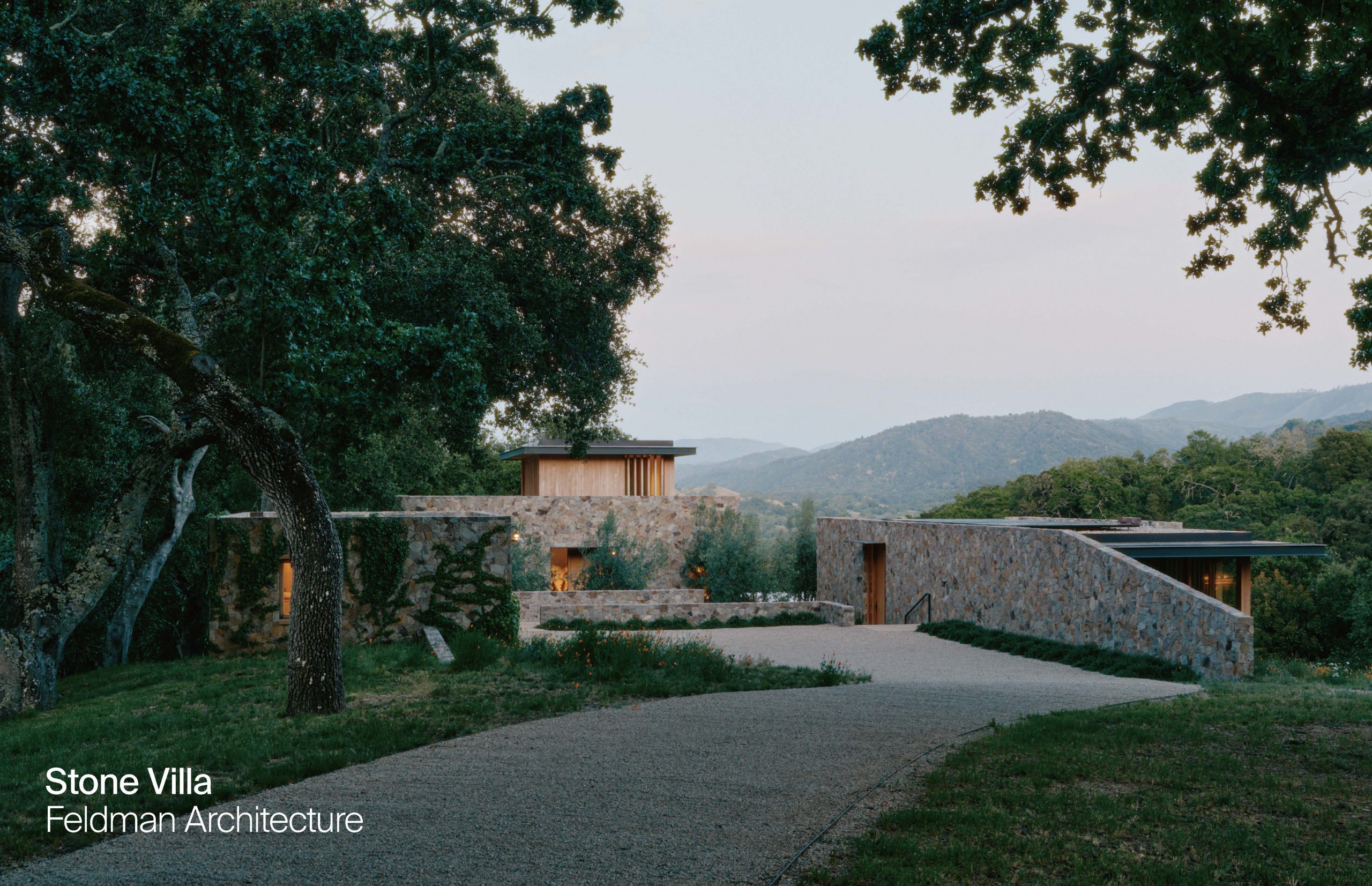 “We sought to create building forms that resembled the simple Italian hillside structures but integrated larger glass openings and minimalistic contemporary detailing,” explains Jonathan Feldman, project principal and founding partner of Feldman Architecture. Masonry is paired with reclaimed teak alongside modern steel accents and expansive sliding glass doors that dissolve boundaries between interior and exterior. Windows and openings are carved with precision, framing valley views through the tree canopy while preserving the solid bearing that lends each pavilion gravitas.