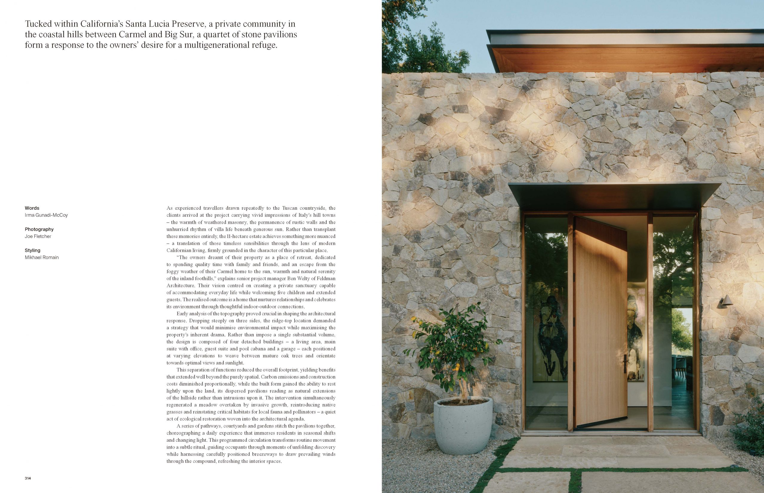 “The owners dreamt of their property as a place of retreat, dedicated to spending quality time with family and friends, and an escape from the foggy weather of their Carmel home to the sun, warmth and natural serenity of the inland foothills,” explains senior project manager Ben Welty of Feldman Architecture. Their vision centred on creating a private sanctuary capable of accommodating everyday life while welcoming five children and extended guests. The realised outcome is a home that nurtures relationships and celebrates its environment through thoughtful indoor-outdoor connections.